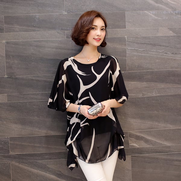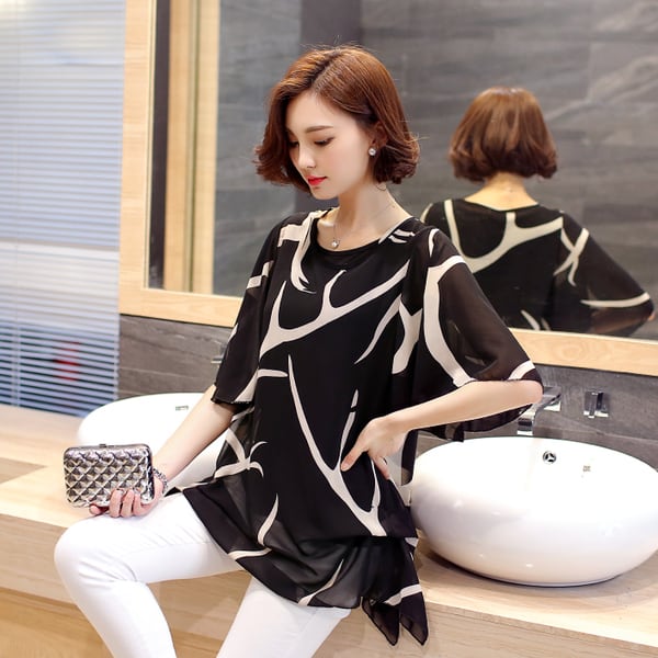 【ゆったり大きいサイズ ミセスレディース シフォンチュニック】30代 40代 50代 オフィス カジュアル デート 大人 チュニック ブラウス 半袖 サマー 夏 涼しい トップス 半そで カットソー送料無料のご案内です☆