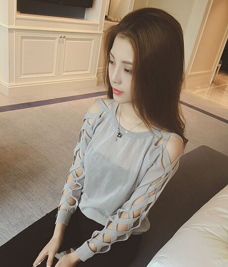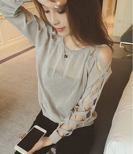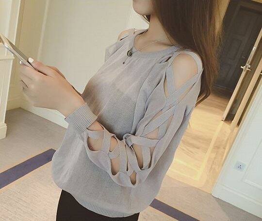 【ニット】セクシー 肌見せ 袖クロスデザイン トレンド トップス 可愛い セクシー クロス袖 シースルー お出かけ デート 長袖
