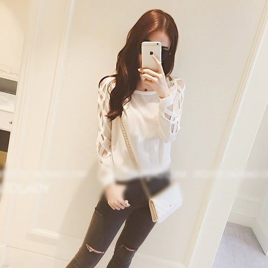 【セクシー 肌見せ 袖クロスデザイン トレンド トップス 可愛い セクシー クロス袖 シースルー お出かけ デート 長袖】のご案内です☆