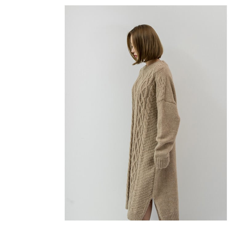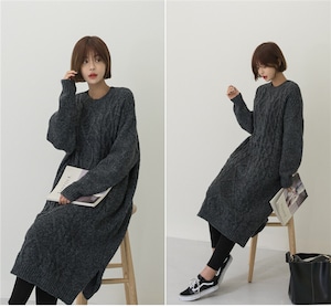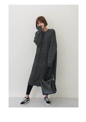 【冬先取りセール レディース ケーブル編みセーター ニットワンピース ロング丈グレー】 ニットワンピ 冬ワンピース ニットワンピ セーター ニット 長袖 ロング 膝下 マキシ丈 大きいサイズ 厚手 暖かい ニット ロングワンピース 30代 20代 40代 ベージュ セーター ニットワンピース 送料無料
