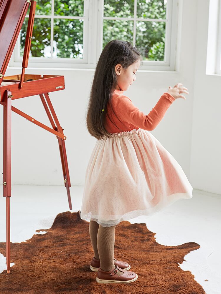 【カラフル エプロン風チュールワンピース ワンピース 女の子】韓国子供服 子ども服 子供服 ひざ丈 チュールスカート 長袖ワンピース キッズ ワンピ 刺繍 可愛い オシャレ 秋冬 新作 送料無料です☆