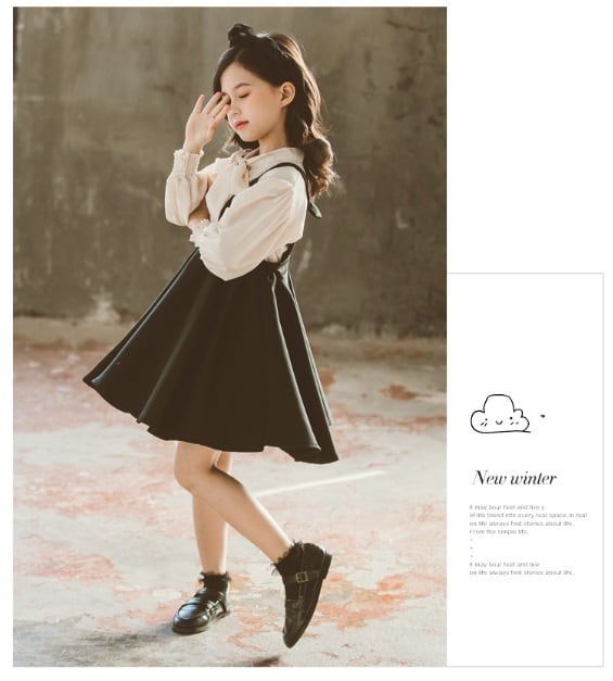 【シンプルでもかわいい☆シャツ×ワンピースのセットアップ】 子ども服 スカート ワンピース シャツ セットアップ 2ピース 2点セット 子供ドレス フォーマル 長袖 シンプル かわいい 110cm-160cm 発表会 結婚式 普段着 入園入学 卒園卒業 送料無料