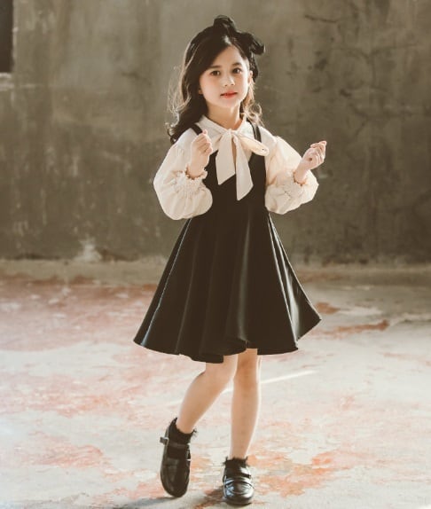 【シンプルでもかわいい☆シャツ×ワンピースのセットアップ】 子ども服 スカート ワンピース シャツ セットアップ 2ピース 2点セット 子供ドレス フォーマル 長袖 シンプル かわいい 110cm-160cm 発表会 結婚式 普段着 入園入学 卒園卒業 送料無料のご案内です☆