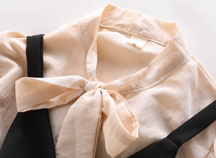 リボンタイとバルーン袖の組み合わせが可愛いシャツとふんわりシルエットのAラインワンピースの組み合わせが、おしゃれな女の子に人気です♪もちろん別々にも着て頂けるので、おしゃれの幅が広がりますね☆