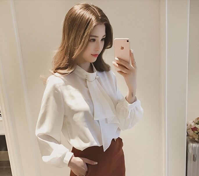 【大人の女性にピッタリ★ボウタイ シフォンシャツ】 トップス シャツ ブラウス レディース とろみ シフォン 無地 シンプル ボウタイ ネクタイ パール 二次会 デート 普段着 通勤 OL ママ 20代 30代 40代 春 秋 無料のご案内です☆
