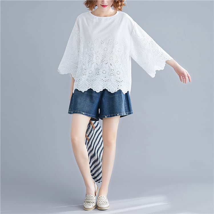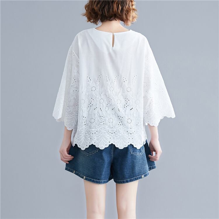 【ロマンティックを叶えてくれる♡白レースブラウス トップス】 レディース レースTシャツ ブラウス エレガント フェミニン ミディアム お出かけ 女子会 Tシャツ プルオーバー Tシャツ 上品 夏 7分袖 韓国ファッション カッコいい シンプル 大人気 大人可愛い