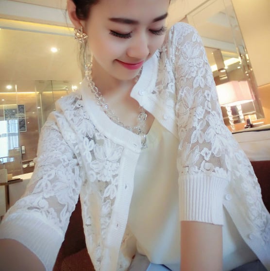 【フェミニンコーデに☆花柄 レース カーディガン】トップス カーディガン レディース レース シースルー 肌魅せ 五分袖 フェミニン エレガント 清楚 大人可愛い 韓国 ファッション オフィスカジュアル 春 夏 20代 30代 40代 送料無料