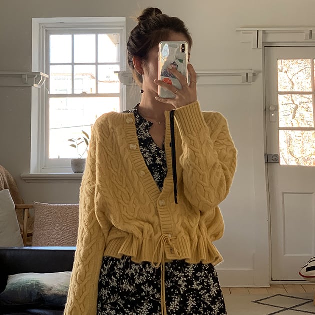 ダボっと感が可愛い♡ケーブルニットカーディガン。