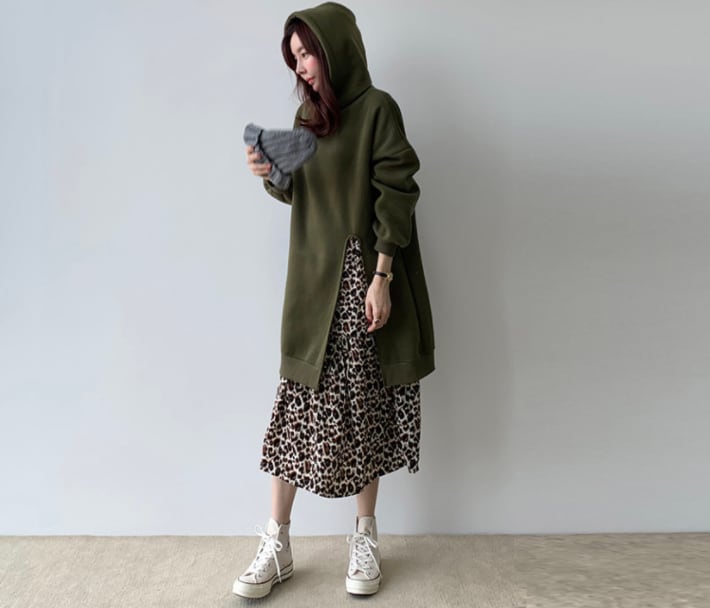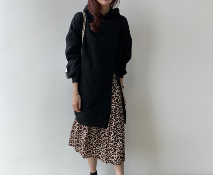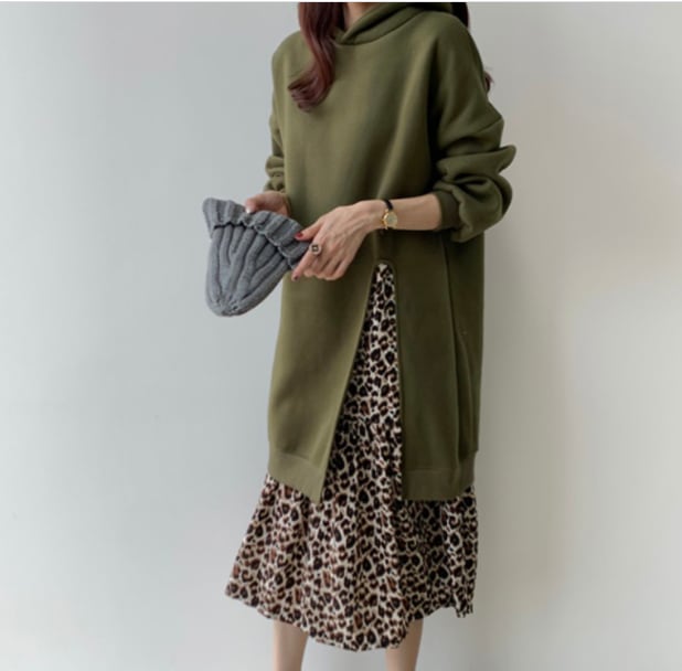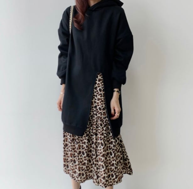 レオバード柄とスウェットの組み合わせがおしゃれなアイテム。