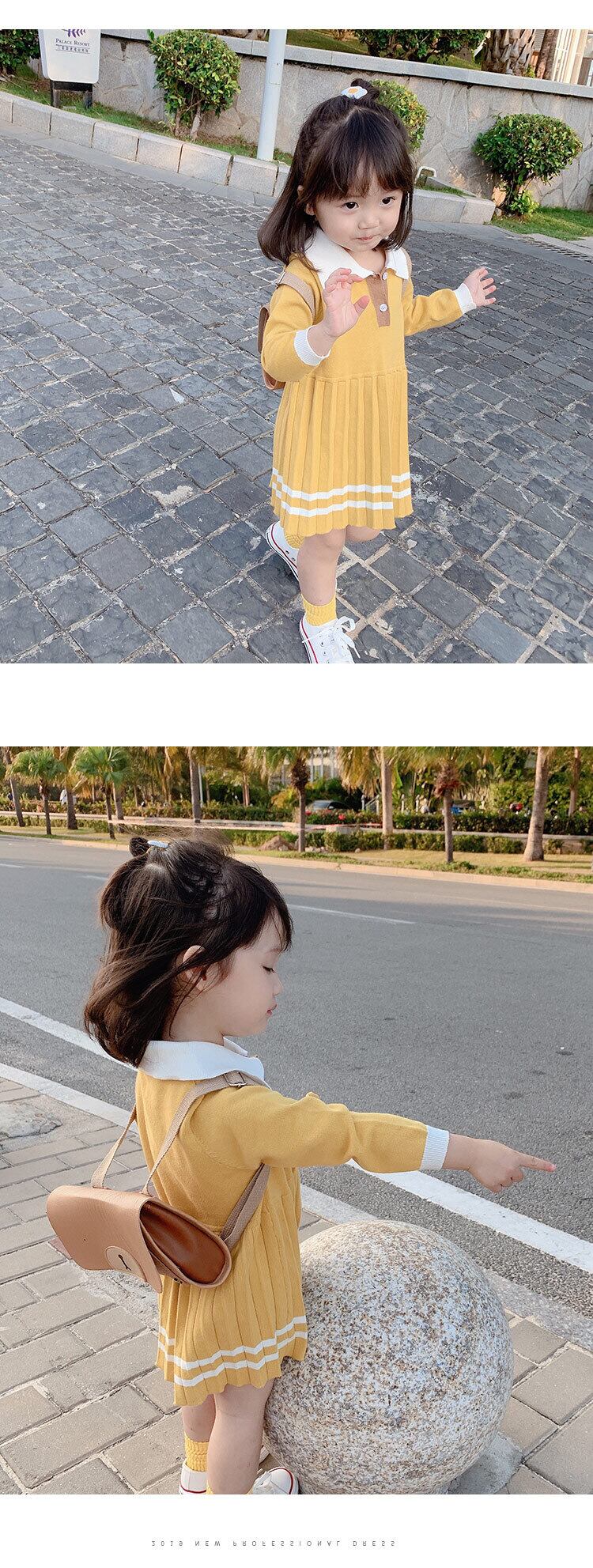 【韓国子供服★ 長袖 チア風 プリーツワンピース キッズ 】ミニ丈スカート ジュニア 80-130㎝ ガールズ 女の子 ダンス 衣装 イエロー オルチャン 韓国のご案内です(^^♪