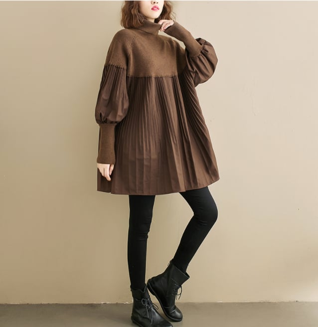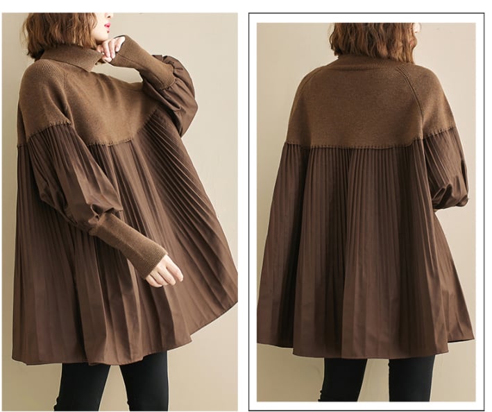 【ふんわりプリーツチュニック☆ニット ドッキング トップス】 トップス チュニック ワンピース ニット プリーツ ドッキング 大きいサイズ 伸縮性 ハイネック タートルネック セーター ゆったり 体型カバー 長袖 20代 30代 40代 50代 送料無料のご案内です☆