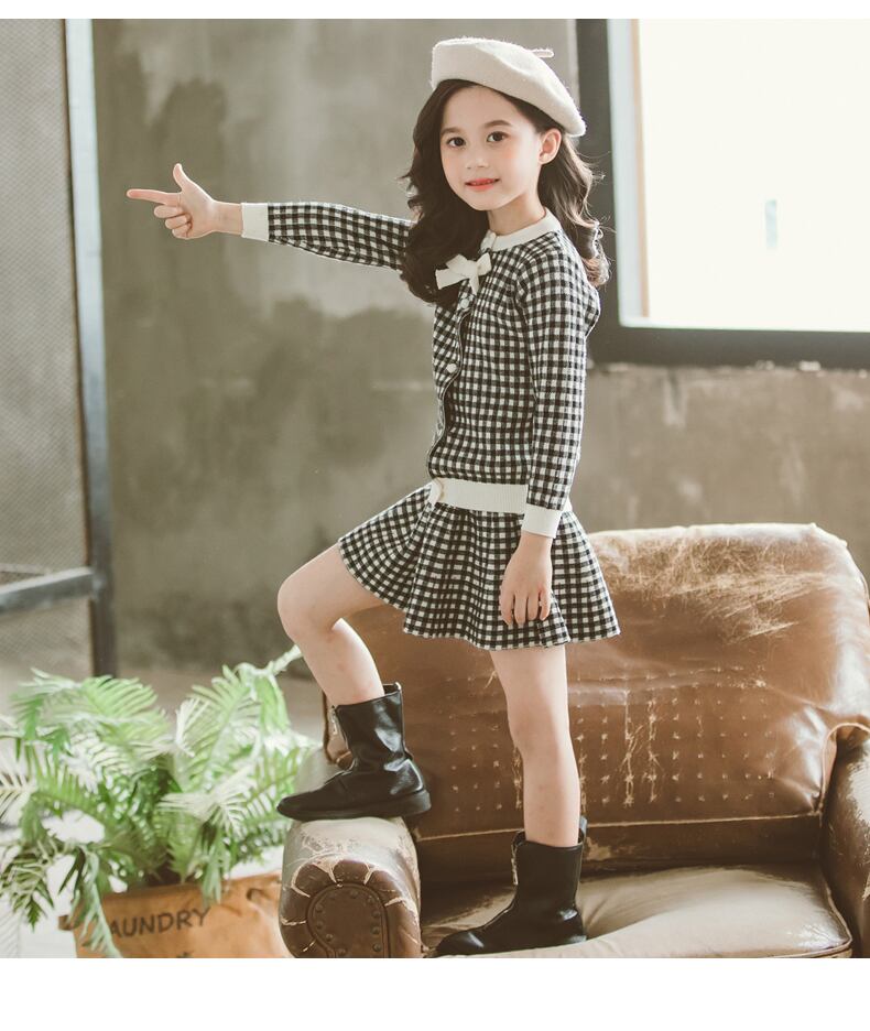 【ニットセットアップ★入園入学に キッズ カーディガン+ミニ丈 スカート】 七五三 フォーマル 子ども服 キッズ 韓国子供服 女の子フレア 長袖 フォーマル おしゃれ ブラック ピンク チェック 子供 ワンピースドレス 発表会 秋 冬 送料無料