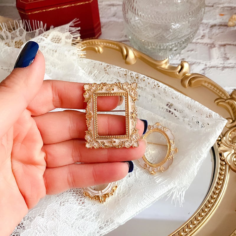 額縁のようなサークルブローチ。
