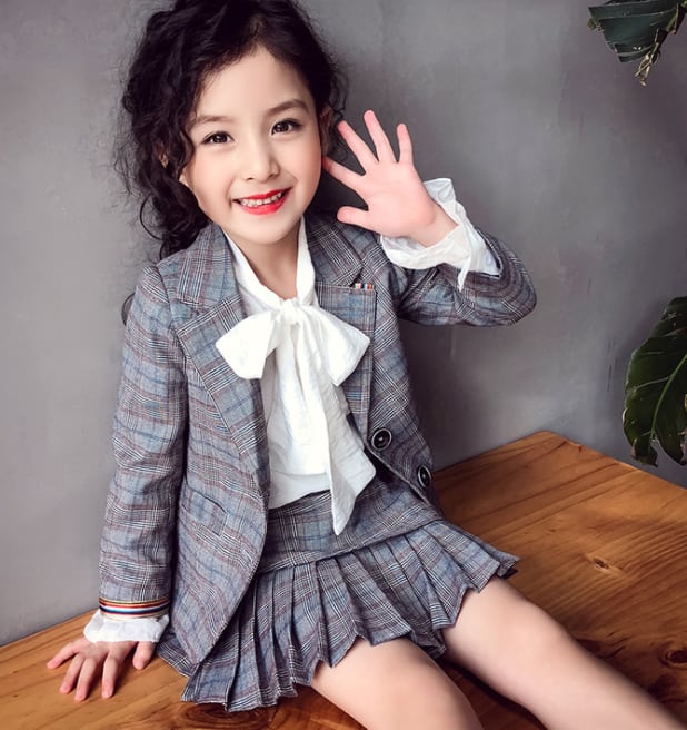 【大人顔負けセットアップ☆キッズサイズ 入学式 スーツ】 セットアップ スーツ 子供服 女の子 ジャケット スカート 上下セット 2点セット グレー 春 秋 チェック 七五三 発表会 結婚式 普段着 入園入学 卒園卒業 100cm 110cm 120cm 130cm 140cm 150cm 160cm 送料無料
