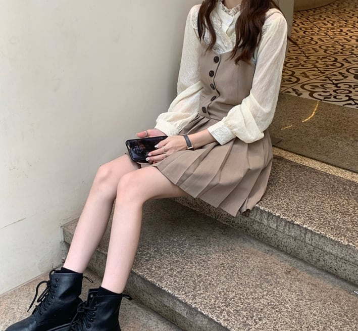 【きれいめカジュアル☆スタイルアップ シンプル ワンピ】ワンピース ジャンパースカート レディース オールインワン レディース きれいめ プリーツスカート 膝上丈 スタイルアップ オフィスカジュアル 通勤 普段着 入園入学 卒園卒業 送料無料