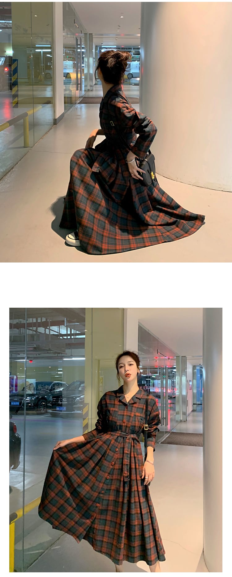 【フレア ウエストマーク☆襟付き チェック柄 レトロワンピース】 レトロドレス ヴィンテージワンピース シャツワンピース クラシック ナチュラル カジュアル 20代 30代 40代 フォーマルワンピース ミモレ