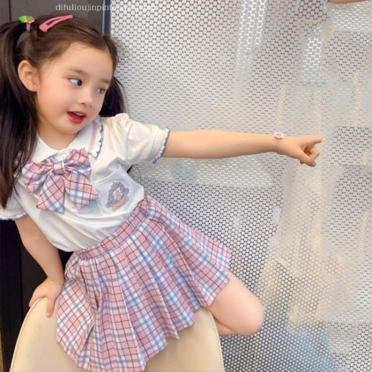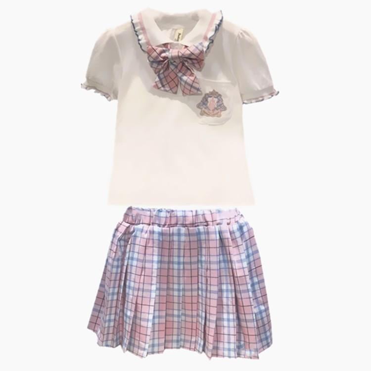 【セーラー服風♡丸襟 フリル 2点セット 半袖トップス+プリーツスカート】ピンク 110-160 チェック 卒園式 入学式 冠婚葬祭 チェックスカート プリーツスカート スーツ 子供服 女の子お宮参りワンピース 半袖 セレモニードレス 子供 おしゃれ 結婚式 旅行 演奏会 卒業式 発表会 人気 綿 夏 秋 春 冬