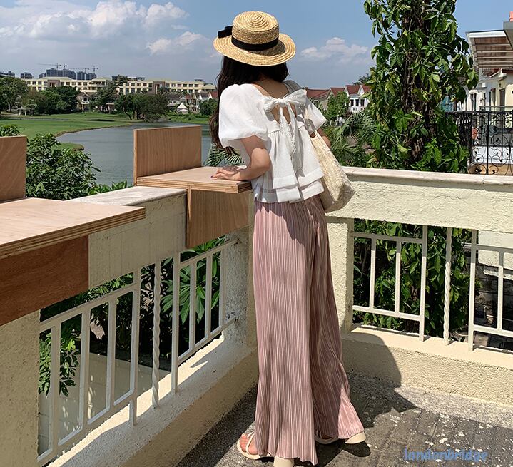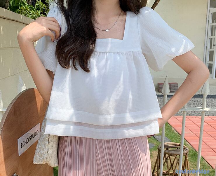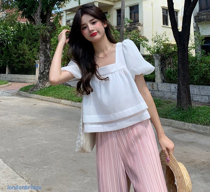 【エレガントなバックコンシャス☆パフスリーブ 半袖 トップス】トップス レディース ブラウス 半袖 パフスリーブ 可愛い お嬢様風 バックコンシャス ホワイト 韓国ファッション 春 夏 10代 20代 送料無料