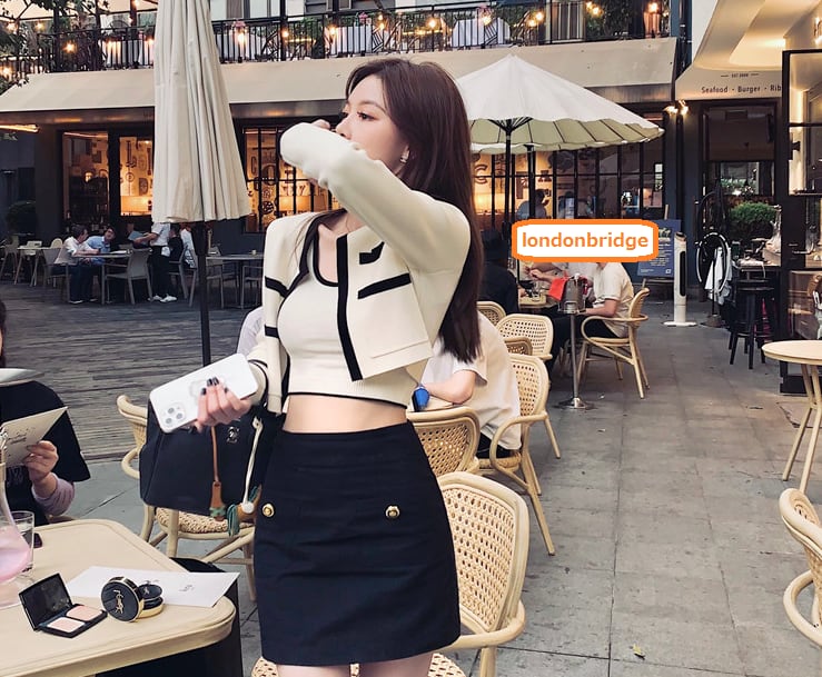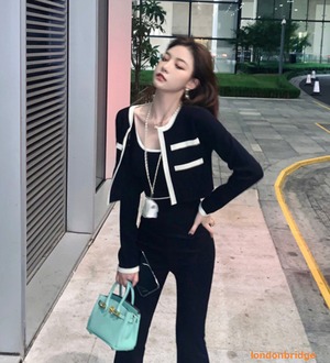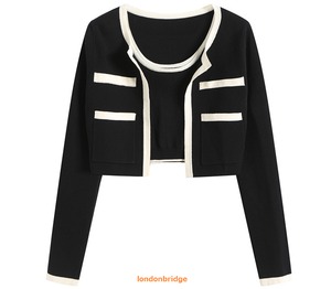 【上品な配色カラー☆レディース アンサンブル トップス】アンサンブル セットアップ レディース トップス カーディガン タンクトップ キャミソール 2点セット 上品 かわいい ショート丈 韓国ファッション きれいめ 春 秋 配色カラー 送料無料のご案内です☆