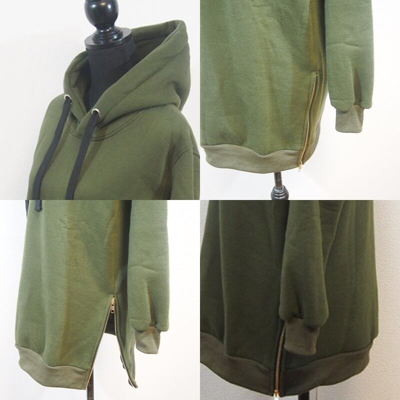 トップス パーカー トレーナー スウェットパーカー ジップチャーム プルオーバー ゆるシルエット 無地 長袖 フード付き