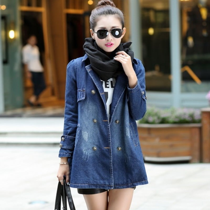 【ジャケット デニム】Aライン☆ダブルブレスト デニムジャケット カジュアル ダメージ加工