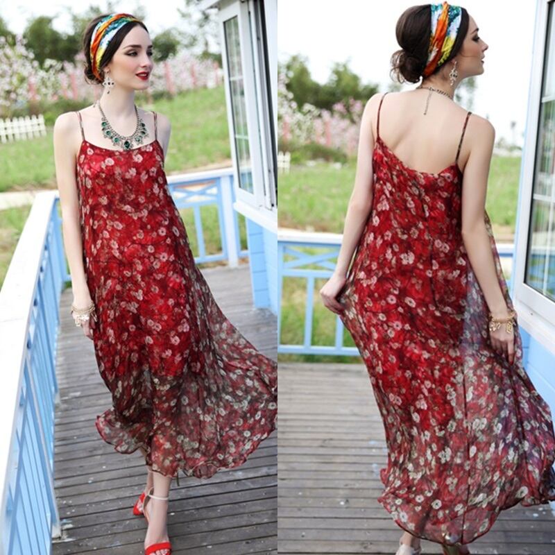 【ワンピース】春夏♪花柄 キャミソール シフォン フレア マキシ丈ワンピース