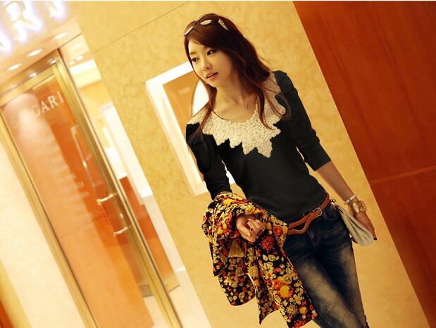 エレガントな女性にはレースラウンドネックが似合う☆パフスリーブカットソー♪