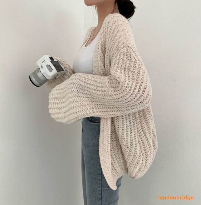 【韓国ファッション☆ざっくり オーバーサイズ カーデ】トップス カーディガン アウター レディース ざっくりニット ニットカーデ ボリューム袖 ニット セーター シンプル 大人 カジュアル 韓国ファッション オルチャン 秋 冬 春 送料無料