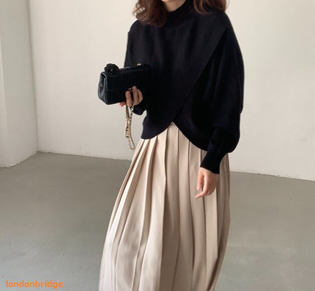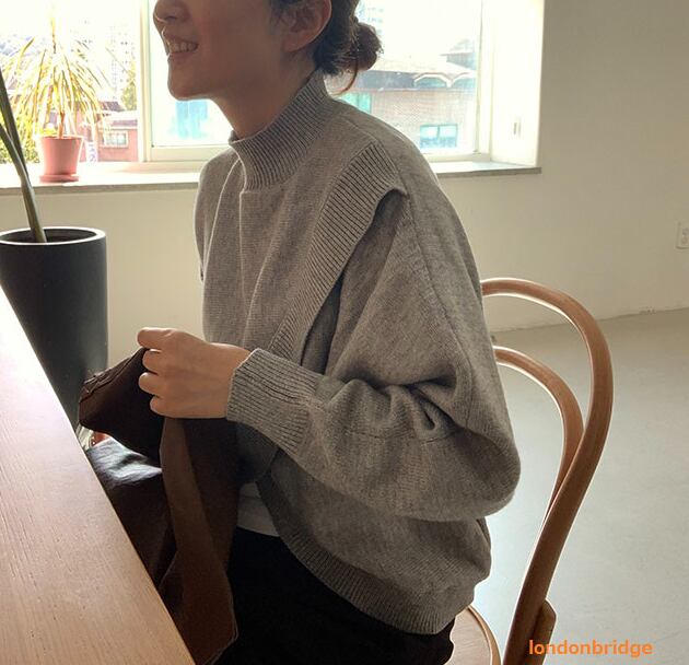 2枚の生地が重なり合うデザインが目を引くニット☆