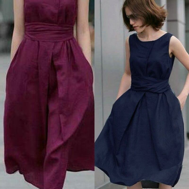 リネン素材で大人かわいい♪ノースリーブミディ丈ワンピース☆
