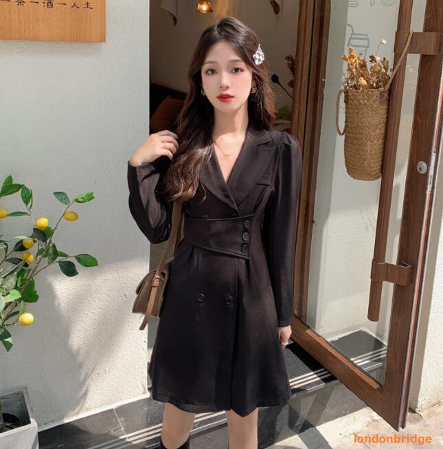【人気の1枚☆シンプル ウエストマーク ワンピ】ワンピース レディース ウエストマーク スタイルアップ ミニ丈 襟付き Vネック 大人可愛い きれいめ カジュアル 韓国ファッション シンプル 春 秋 送料無料