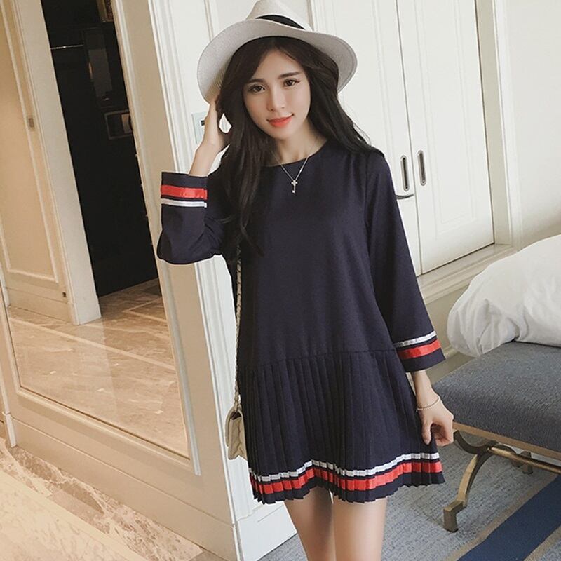 プリーツスカートがキュートな配色ボーダー入りワンピース♪