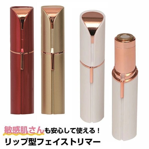 ムダ毛ケア リップ型フェイスシェイバー LEDライト ヘッド部分取り外し可能 水洗い可能 刃が肌に触れない 敏感肌さんも安心!