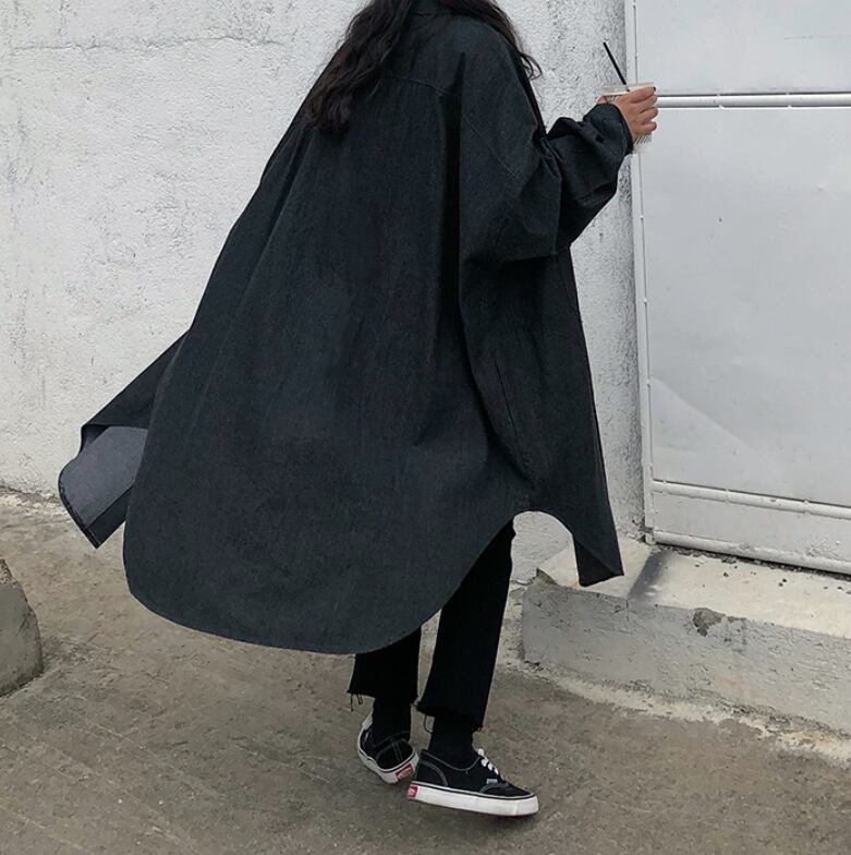 【羽織にも使える☆オーバーサイズ デニム シャツ】トップス シャツ ワンピース レディース デニムシャツ 長袖 羽織り 大きいサイズ オーバーサイズ ロング丈 ワンピ ブルー ブラック カジュアル シンプル 春 秋 送料無料