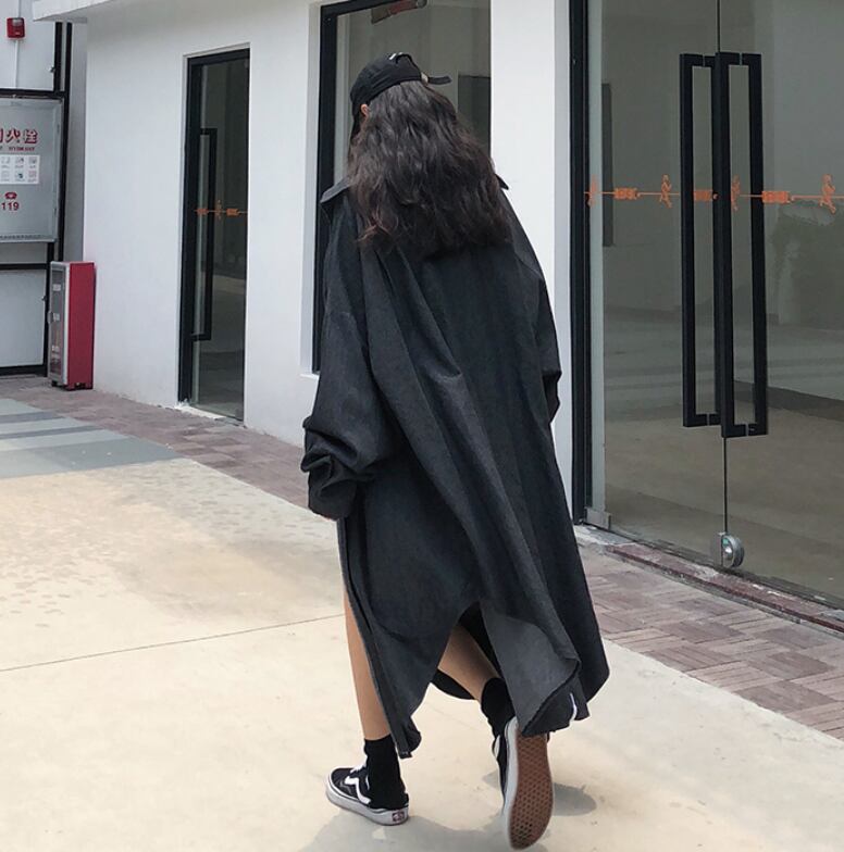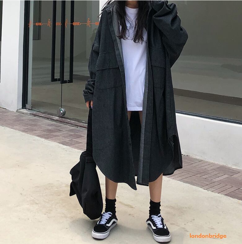 【羽織にも使える☆オーバーサイズ デニム シャツ】トップス シャツ ワンピース レディース デニムシャツ 長袖 羽織り 大きいサイズ オーバーサイズ ロング丈 ワンピ ブルー ブラック カジュアル シンプル 春 秋 送料無料のご案内です☆