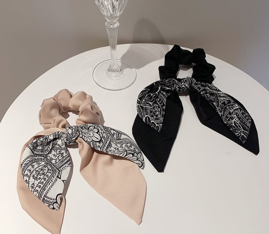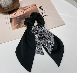【ペイズリー柄シュシュ☆レディース ヘアアクセサリー】ヘアアクセサリー シュシュ レディース ファッション小物 ゴム バンダナ ペイズリー柄 ヘアゴム 簡単アレンジ 大人可愛い ブラック ベージュ 通勤 通学 オフィスカジュアル 送料無料
