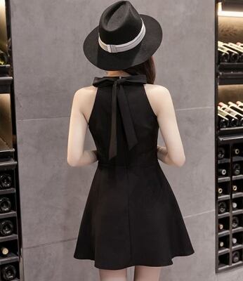 ショート ノースリーブ ホルターネック フレア ワンピース 春夏