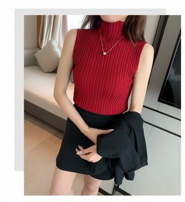 【ノースリーブ】ミディアム ノースリーブ ハイネック リブ 無地 トップス ニット・セーター 春夏