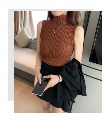 /無地/ノースリーブ/ハイネック/ミディアム/リブ/