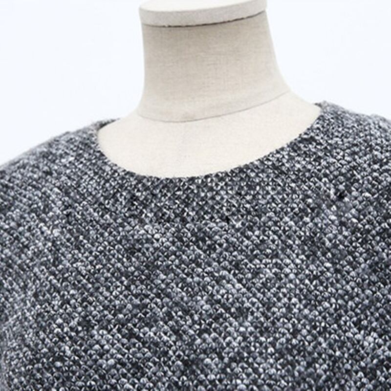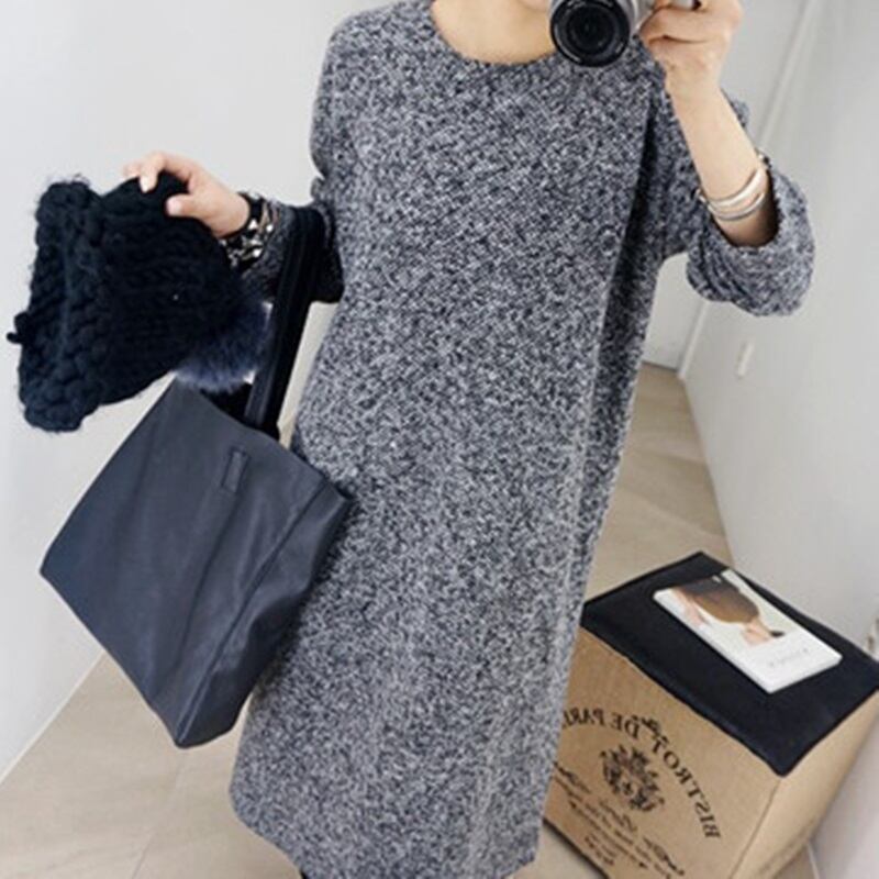 長袖 タイト ワンピース ミディアム丈 クルーネック 無地 カジュアル系