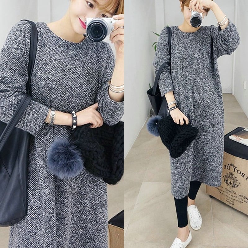 【ワンピース】長袖 タイト ワンピース ミディアム丈 クルーネック 無地 カジュアル系のご案内です☆