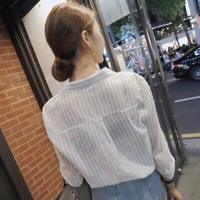 /ストライプ/長袖/襟付き/