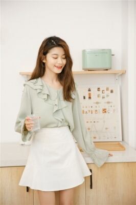 サークルフリルの胸元がゴージャスでエレガントな長袖ブラウス☆