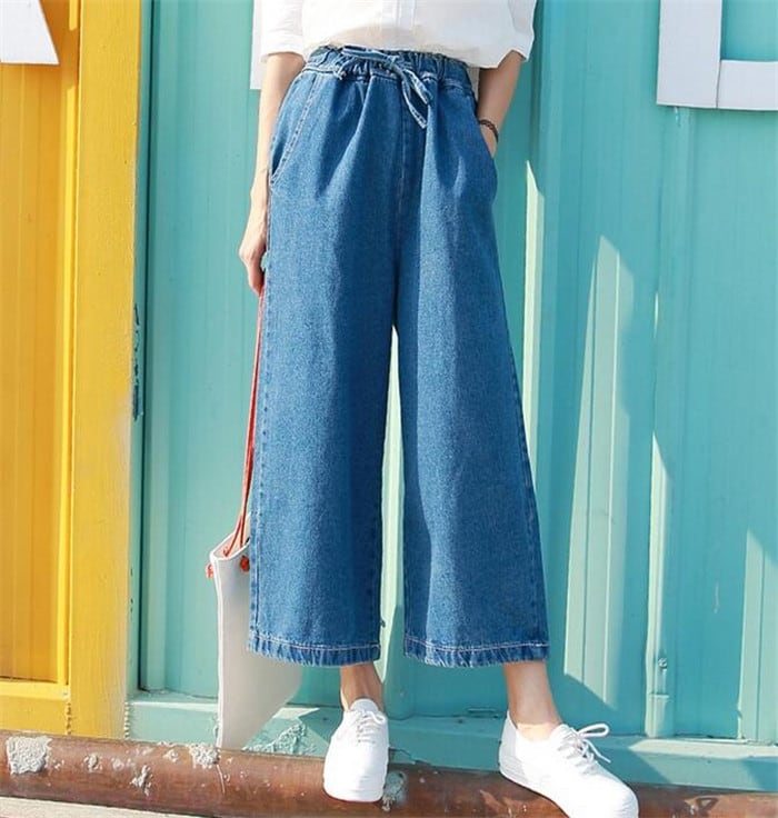 ガウチョパンツ スカーチョ ボトムス ワイドパンツ ハイウエスト ダークブルー ライトブルー
