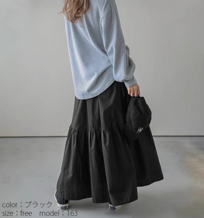 【大人見えするデザイン☆デザイン ギャザー スカート】 スカート レディース ティアード ギャザー ロング丈 マキシ丈 フレア Aライン ボリューム シンプル おしゃれ デザイン フィッシュテール ポケット付き カジュアル 春 夏 秋 冬 韓国ファッション 送料無料