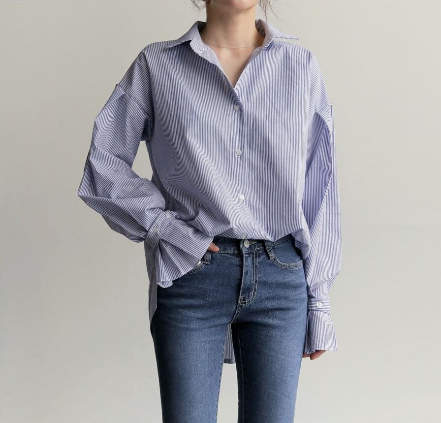 【新商品 送料無料】秋物 トレンド ★ストライプシャツ トップス シャツ レディース 長袖 トップス ブラウス おしゃれ 可愛い ストライプ ベルスリーブ 秋冬 2017秋新作 S/M/L/XL お出かけ デート 通勤 通学 送料無料 プチプラ のご案内です☆
