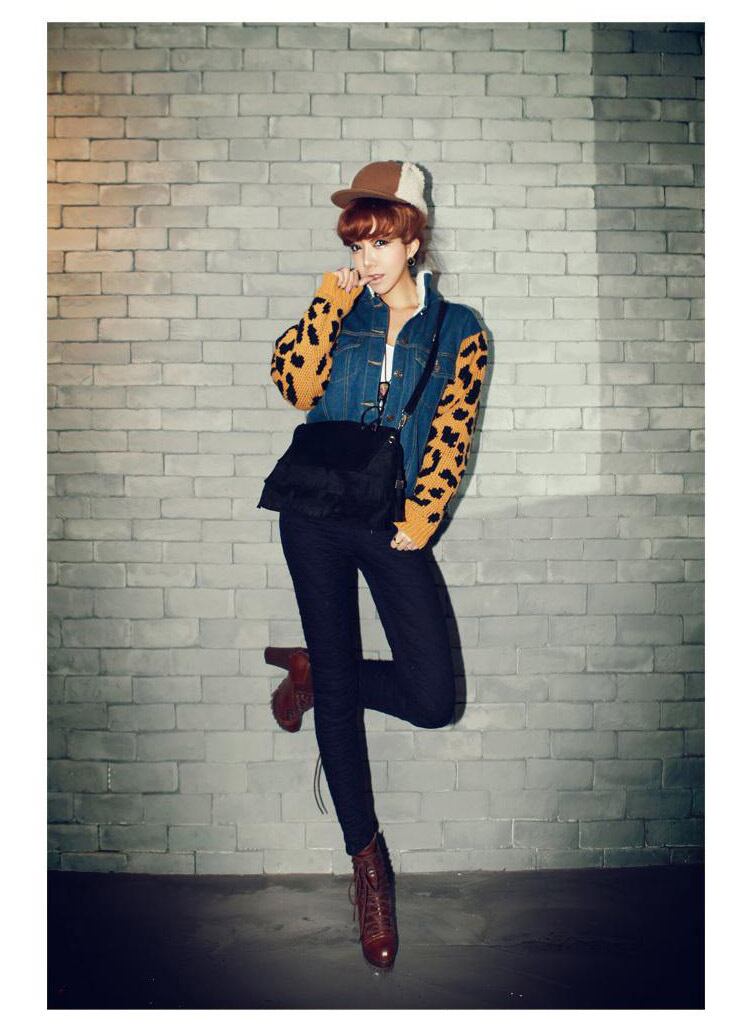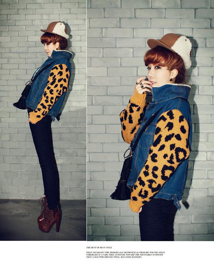 【デニムジャケット】レオパード柄 ニット 長袖 裏ボア デニム ジャケット 異素材 個性的のご案内です☆