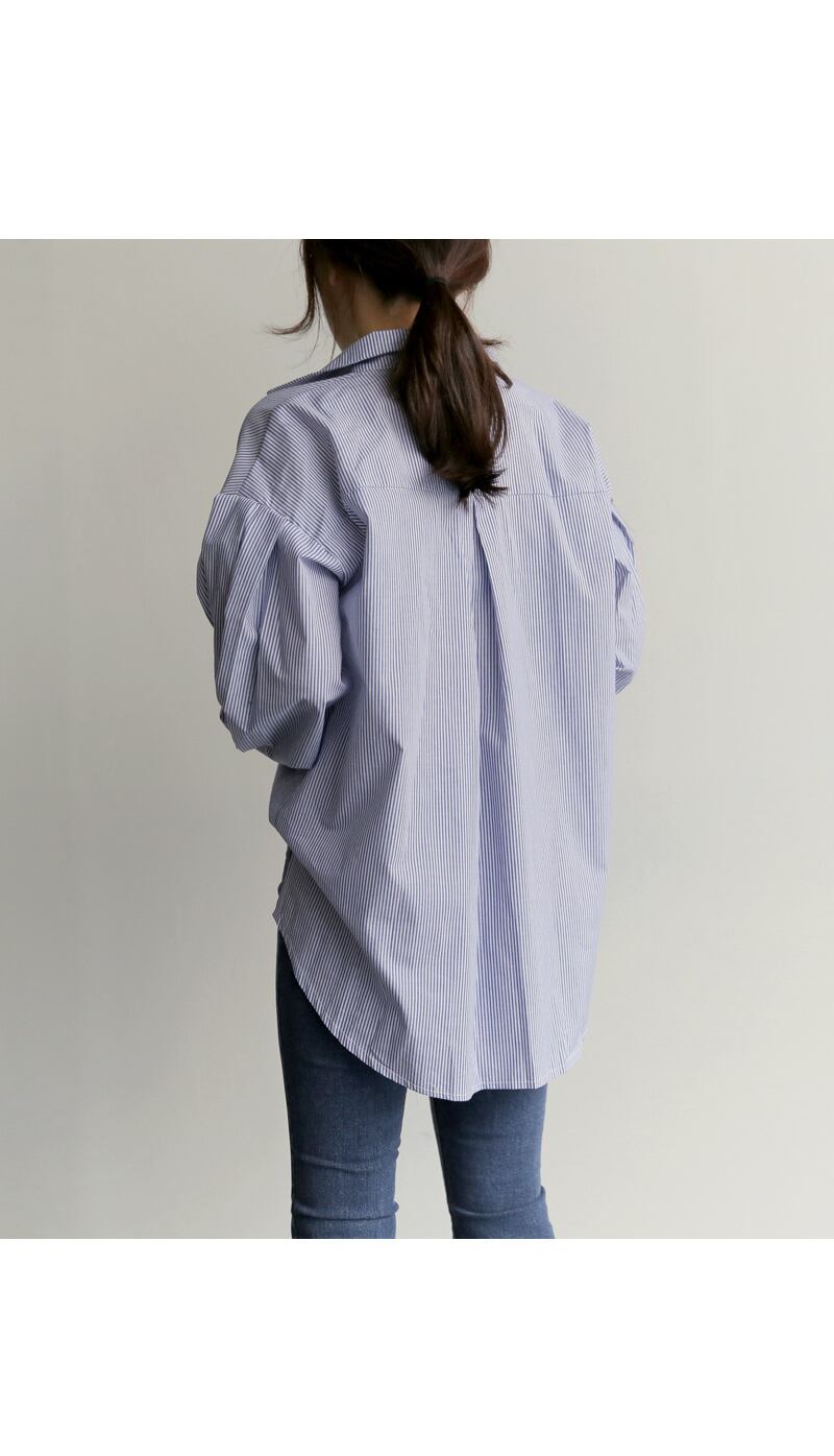 袖フリル 袖フレア オフィスカジュアル オフィスコーデ 体系カバー ロング 長袖 襟付き 袖コンシャス ストライプ トップス