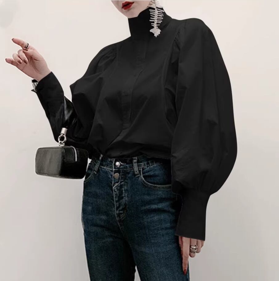【フォーマルにもおすすめ☆デザイン レディース シャツ】 シャツ ブラウス レディース トップス 大きいサイズ スタンドネック 長袖 ランタンスリーブ パフスリーブ デザインシャツ おしゃれ 無地 フォーマル 入学式 入園式 卒業式 卒園式 七五三 二次会 オフィスカジュアル モード かっこいい シンプル 個性的 送料無料のご案内です☆