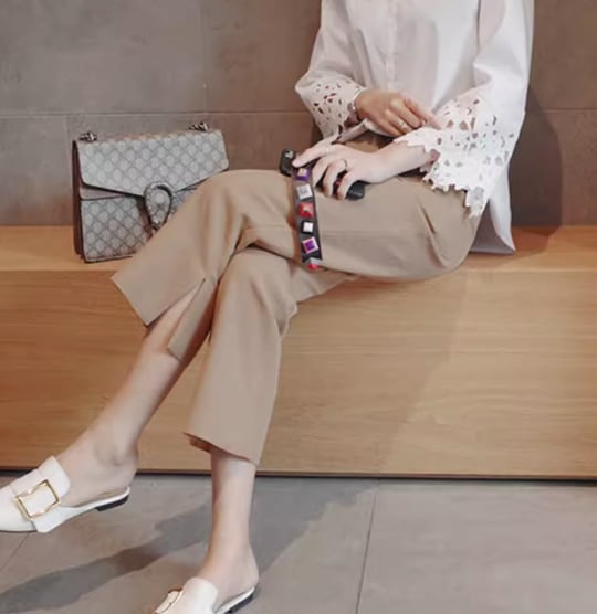 自然な美しさを引き立てる、すっきりシルエットのクロップドパンツ☆